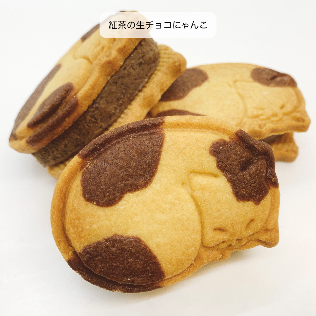 フランス産高級チョコレートと、香り高いアールグレイを使用した生チョコレートを、可愛らしい猫のクッキーでサンドしました。