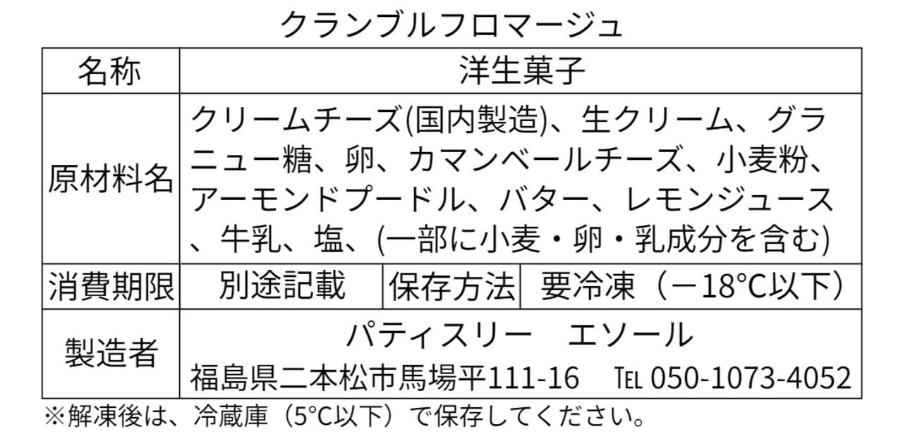 冷蔵庫で、約3時間解凍してお召し上がりください。